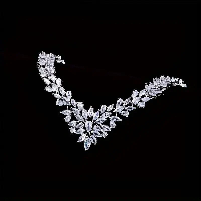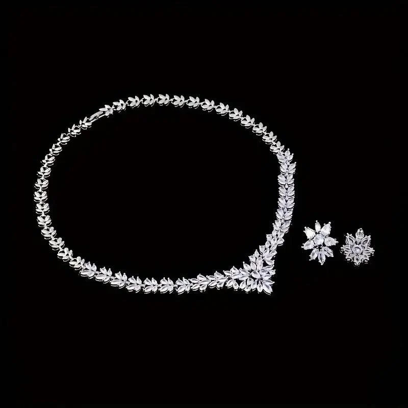 This beautiful set includes a pair of stud earrings and a necklace, perfect for birthdays, festivals, or special occasions. Each piece features delicate zirconia floral designs.