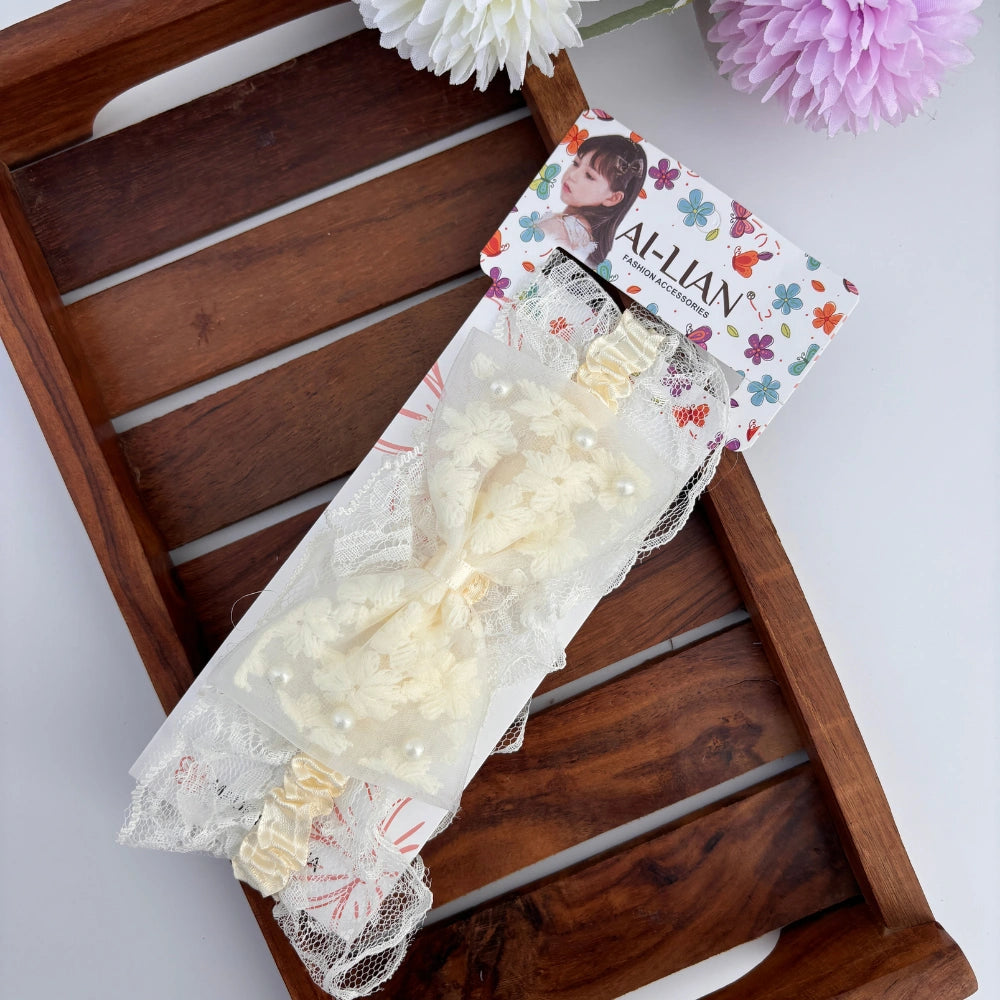 “A sweet blend of lace, bow, and floral charm—this newborn headband is crafted for softness and style. Perfect for delicate heads and picture-perfect moments.”