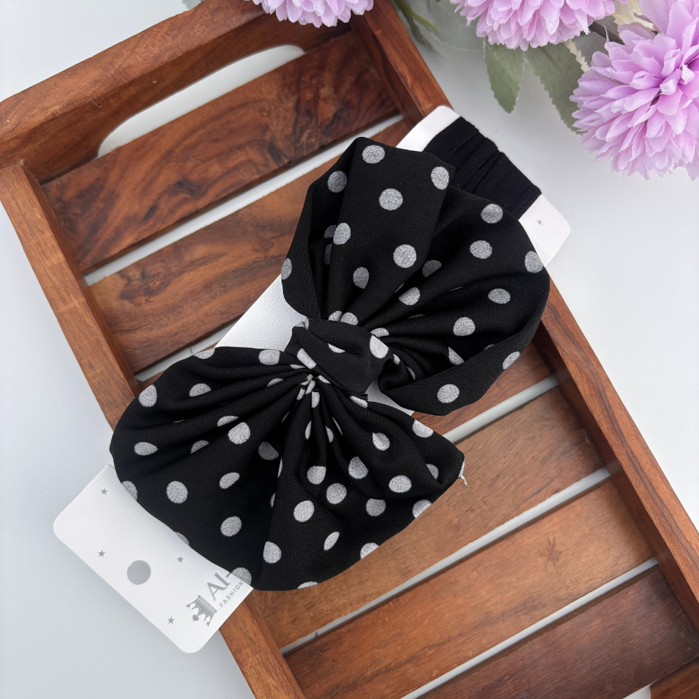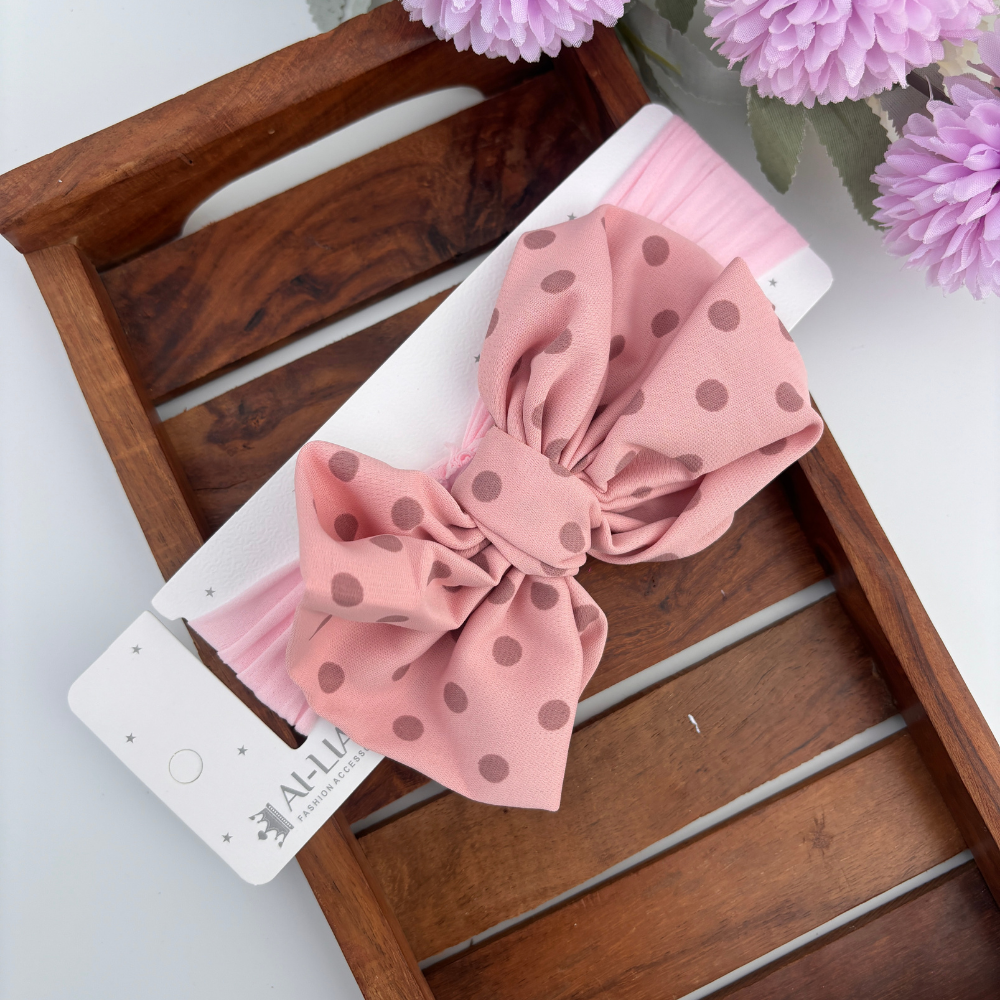 Cute and comfy headband with a sheer dotted bow, perfect for baby girls. Comes in multiple pastel shades to match every outfit.