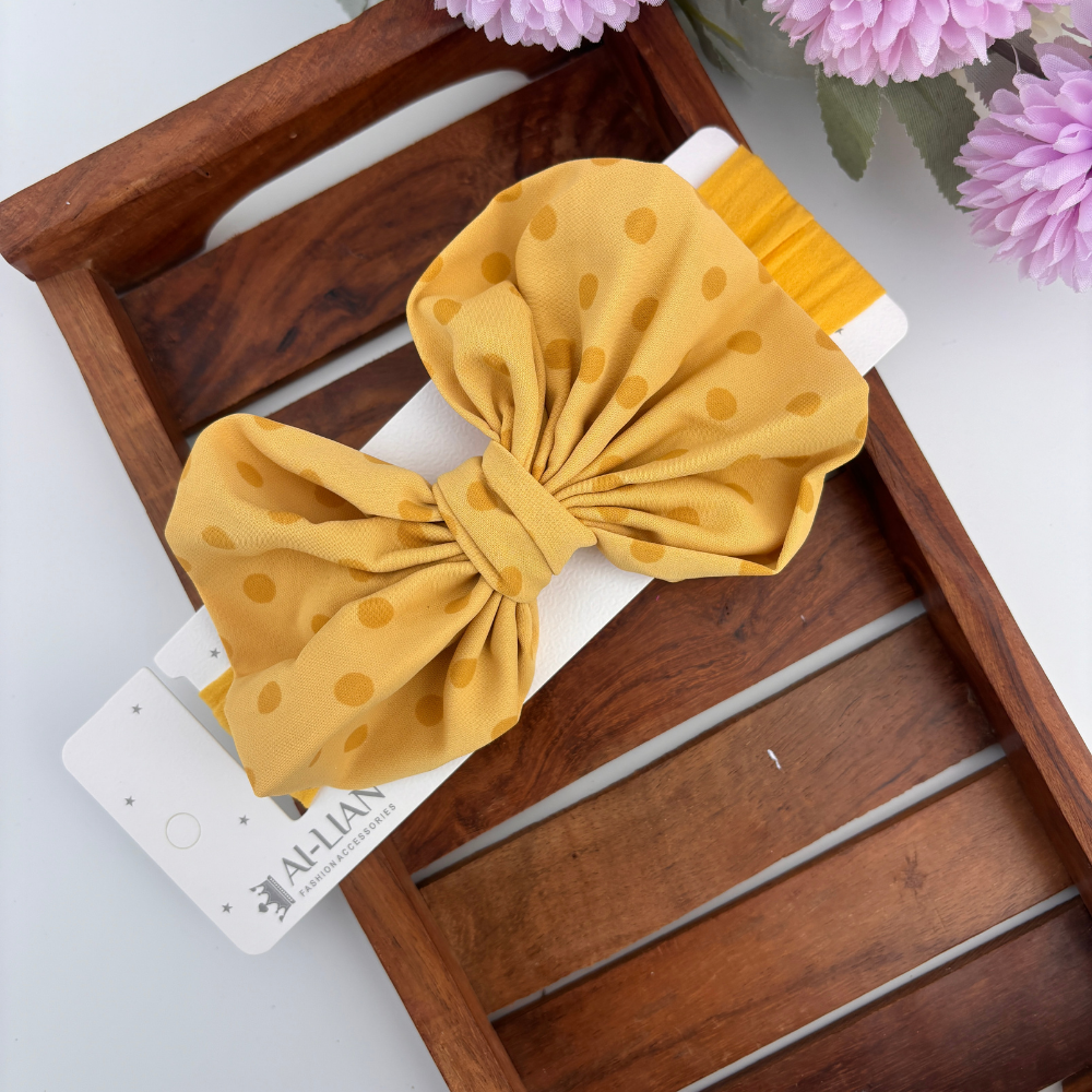 + Free ShippingCute and comfy headband with a sheer dotted bow, perfect for baby girls. Comes in multiple pastel shades to match every outfit.